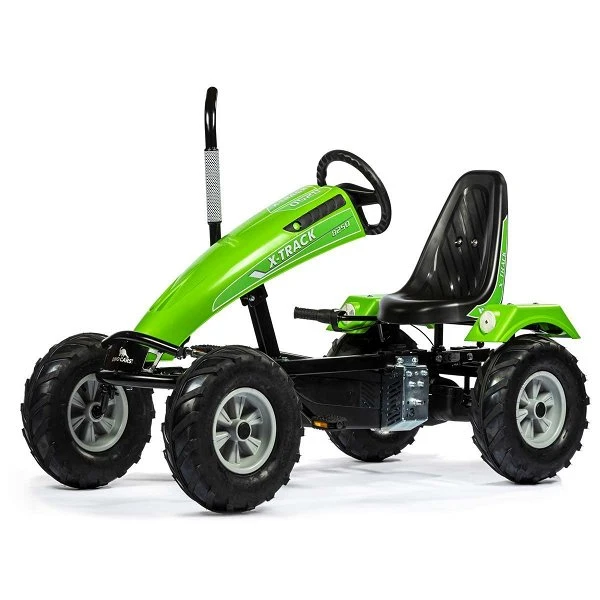Die 3-Gangschaltung mit integrierter Rücktrittbremse lässt die Vor- und Rückwärtsfahrt ohne weiteres Umschalten zu. Außerdem verhindert der BF3 Antrieb das Mitdrehen der Pedale während der Vorwärtsfahrt. Die Fahrer können somit Tretpausen während der Vorwärtsbewegung einlegen. Hierdurch wird das Verletzungsrisiko minimiert. Zum Rückwärtsfahren bremst man das Go-Kart intuitiv mit den Pedalen oder mit der Handbremse, bis es zum Stillstand kommt. Danach werden die Pedale rückwärts getreten. Der Rückwärtsgang legt sich automatisch ein. Mit Hilfe der integrierten 3-Gangschaltung kannst du auch in steilerem Gelände das Kart jederzeit leicht bewegen. Das ist Fahrspaß und Sicherheit pur.