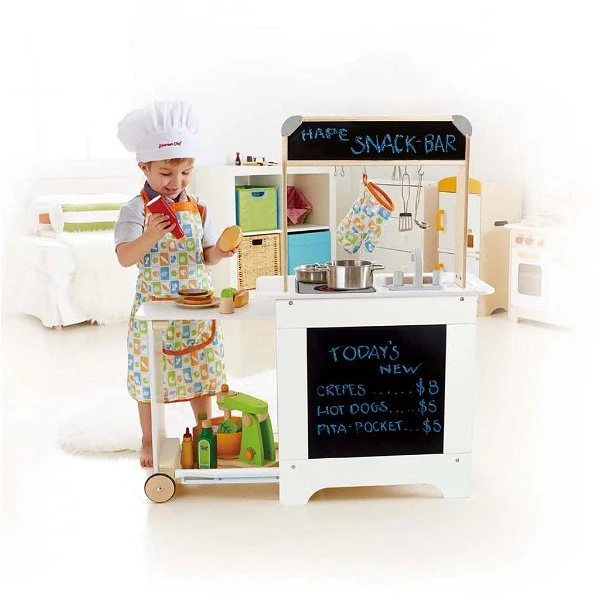 Mit dieser platzsparenden All in One Küche kann Ihr Kind der Chefkoch sein! Es ist alles dabei was Ihr Kind braucht: Herd, Spülbecken, Arbeitsplatte. Ihr Kind kann im eigenen Restaurant Gerichte servieren oder einfach zu Hause das Abendessen vorbereiten! Kochen Sie doch gemeinsam mit Ihrem Kind und lassen es bei einfachen Aufgaben in der Küche mithelfen!