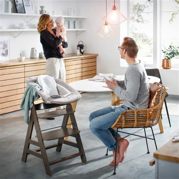 Das ideale Newborn-Set. Mit dem kuscheligen Alpha Bouncer Deluxe können die mitwachsenden hauck Holzhochstühle Alpha+ bzw. Beta+ bereits ab der Geburt genutzt werden. Neugeborene fühlen sich hier besonders wohl, denn sie können auf Augenhöhe am Familiengeschehen teilhaben.