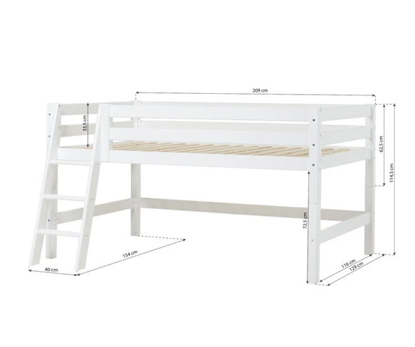 Hoppekids Halbhohes Bett ECO Luxury – 120×200 cm, schräge Leiter