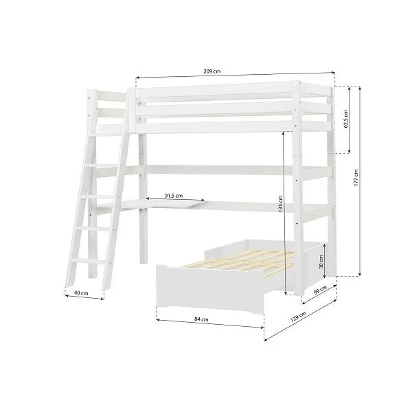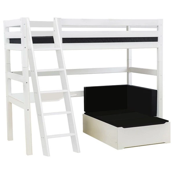 Hoppekids Hochbett ECO Luxury 90×200 cm, schräge Leiter & Tischplatte & Lounge-Ecke