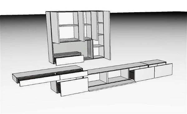 - drei LED-Lichtleisten für die Lowboards und das Schreibelement