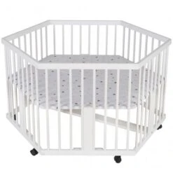 Schardt Laufgitter Basic Buche Massiv Weiß 75 X 100 Cm, Mit Laufrollen, Folie Schäfchen Grau