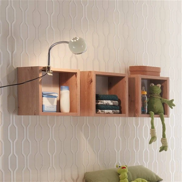 Dieses dreiteilige Hängeregal passt optimal zum Cindy Kinderzimmer. Es ist weiß matt lackiert und ist besonders über der Wickelkommode eine hilfreiche Ergänzung um viele Dinge immer griffbereit zu haben. Aber auch für eine schöne Deko im Kinderzimmer eignet sich das Cindy Hängeregal optimal.