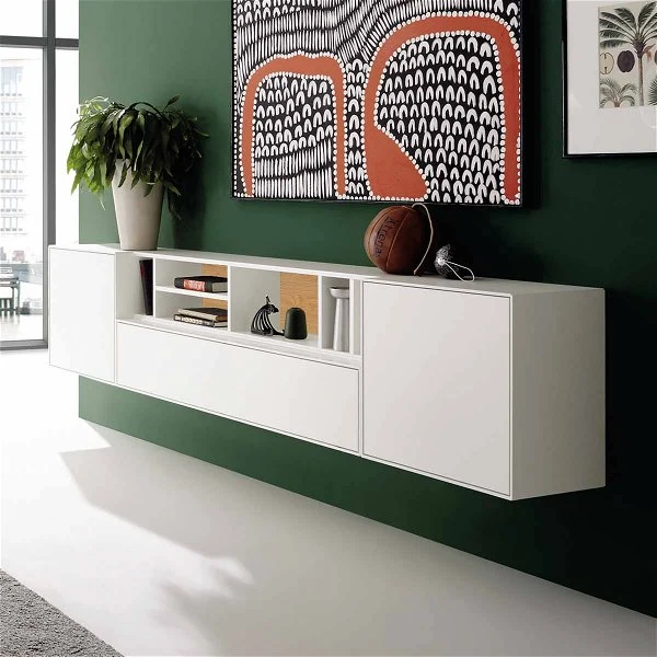 Das Hängeelement verfügt über 1 Tür und wird inkl. Hängebeschlag geliefert. Der Türanschlag der Drehtür (links oder rechts) ist frei wählbar bei Auslieferung mit rechtem Türanschlag versehen.