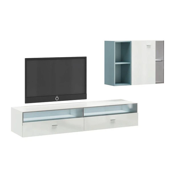 now! no.14 by hülsta Kombination 10 mit Glas-Abdeckplatte 147x280x52 Lack-weiß/Lack-Hochglanz-weiß