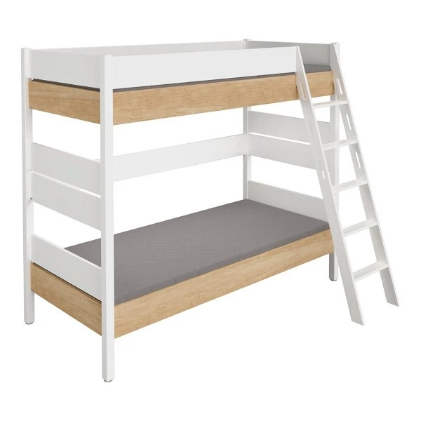 Paidi Kira Etagenbett 180 cm schräge Leiter Kreideweiß/Eiche-Nebraska 90×200 cm