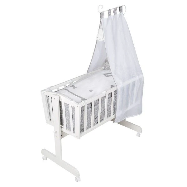 Mit dem Roba Komplettwiegenset lassen sich die Kleinsten wunderbar in den Schlaf wiegen. Die weichen und liebevoll gestalteten Kinderbettausstattungen sowie ein kuschelig gepolsterter Einhang machen das Schlummern besonders bequem. Wenn die Bewegung einmal zuviel werden sollte, lässt sich das Roba Komplettwiegenset schnell und einfach mit einem Feststellknopf fixieren.
