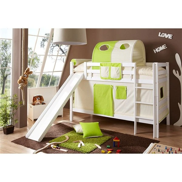 Das Ticaa Lupo Etagenbett mit Rutsche präsentiert sich in klassisch, zeitloser Eleganz. Die Leiter ist beidseitig montierbar. Ein Rundum-Schutz sorgt für beruhigende Sicherheit und eine Rutsche für enormen Spielspaß. Grundstabilität und Standsicherheit sind hier eine Selbstverständlichkeit.