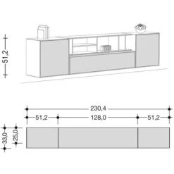 Now! No.14 By Hülsta Hängebaukasten 2R 38,4x140x34 Lack-weiß/Lack-Hochglanz-weiß